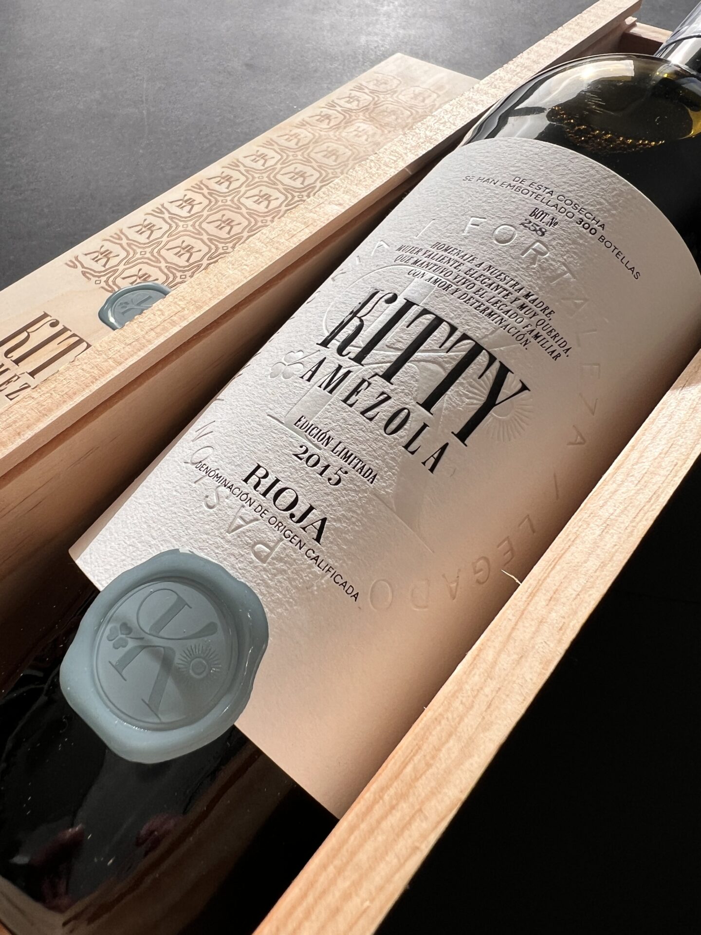 Notas de cata: Este vino es un tributo a la madre de las hermanas Amézola. Combina uvas de las viñas favoritas de Kitty. Un vino maduro, de estilo tradicional con aromas a cuero y y hojas otoñales, con taninos finos y sabores sedosos a bayas de verano. Vivo y armonioso.